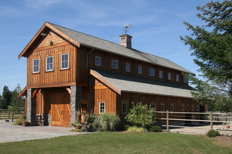 Tour a rustic barn with four stalls and stunning lounge above. Quinis Design Works completed this superb barn back in 2006. The traditional design is something that won’t ever go out of style. The private barn is situated on 40 acres in Abbotsford, British Columbia. It took approximately eight months to complete the project. Tundra Developments also worked alongside Quinis on this barn. The barn exterior is board and batten cedar…