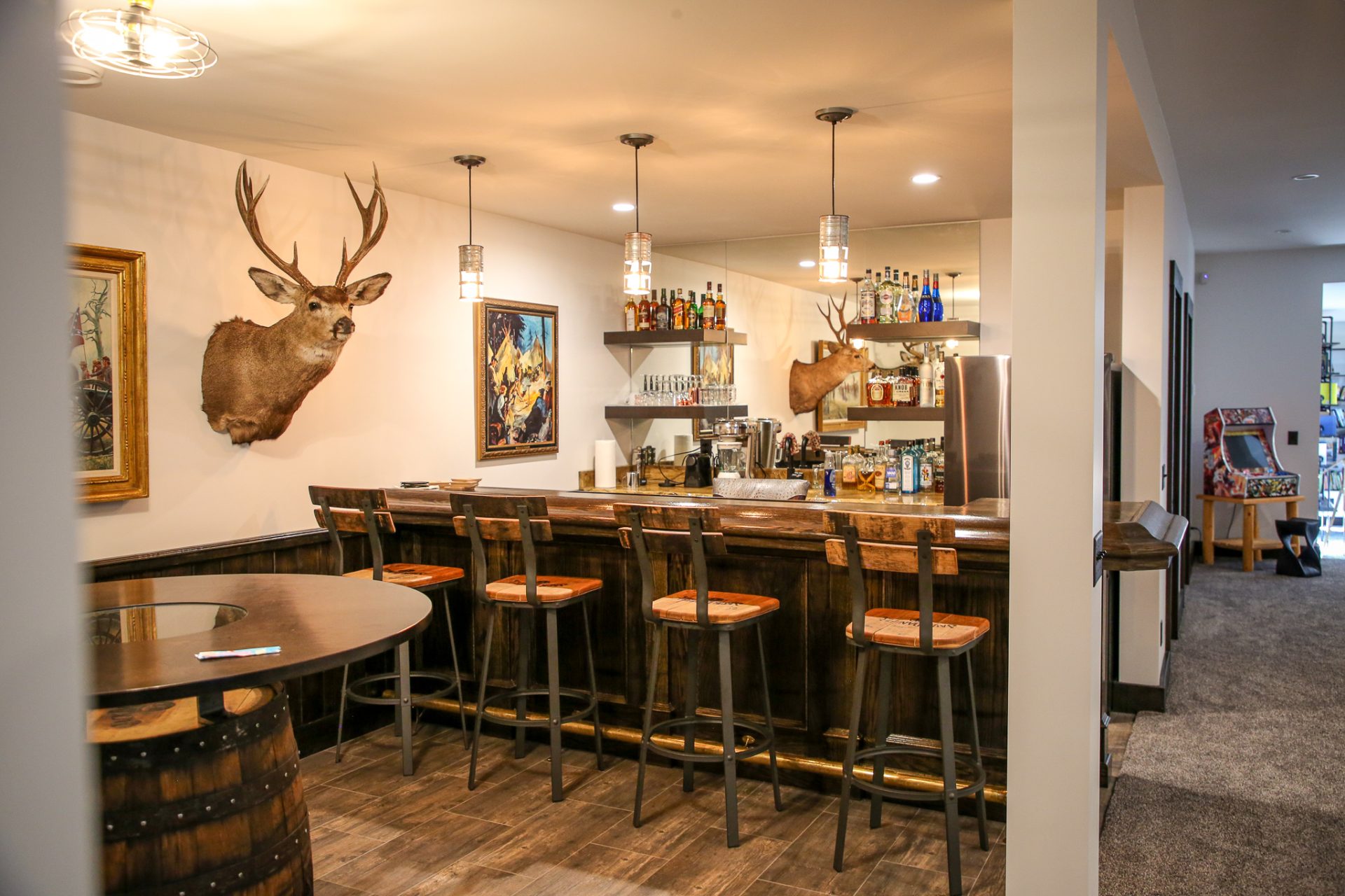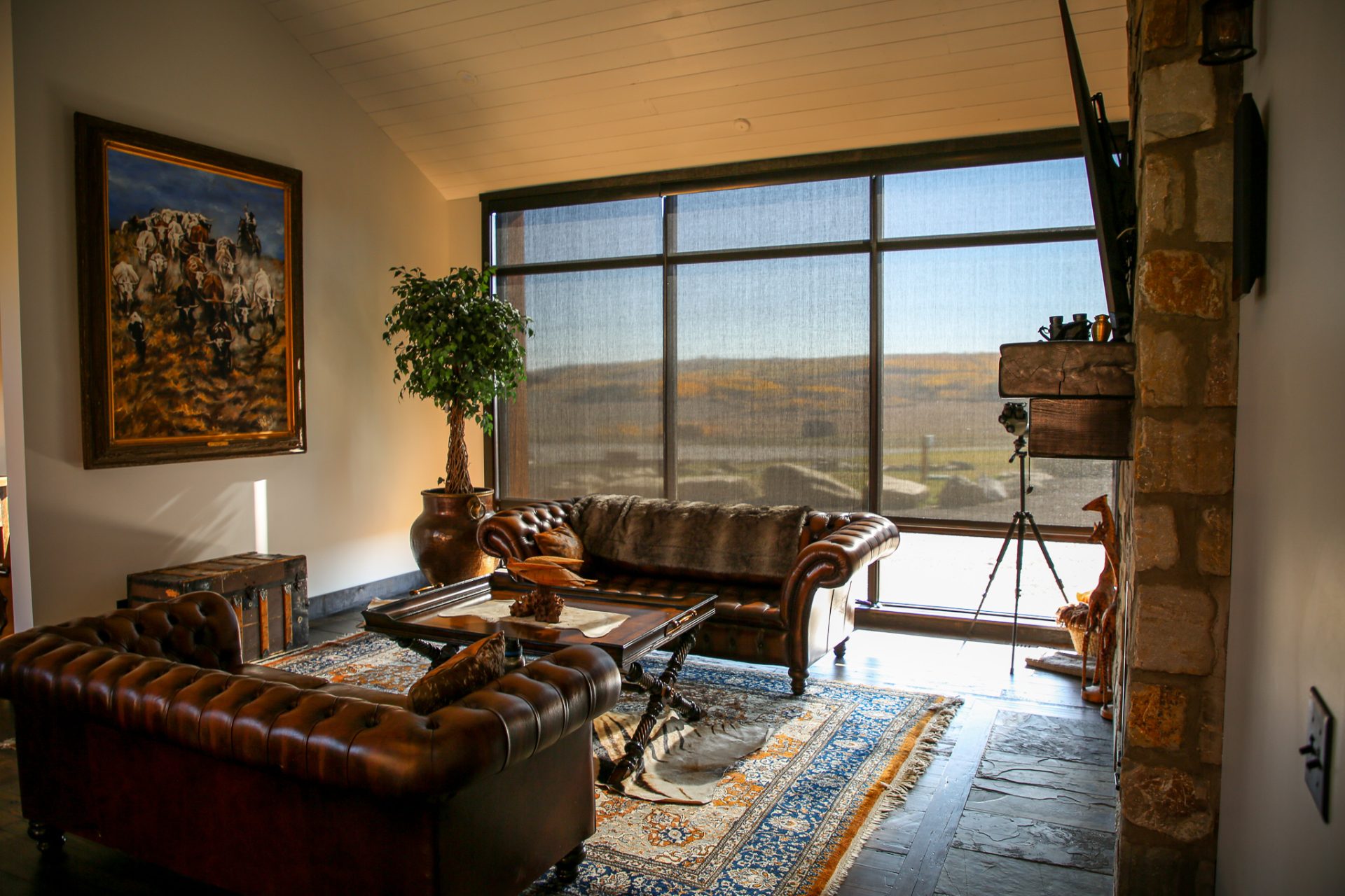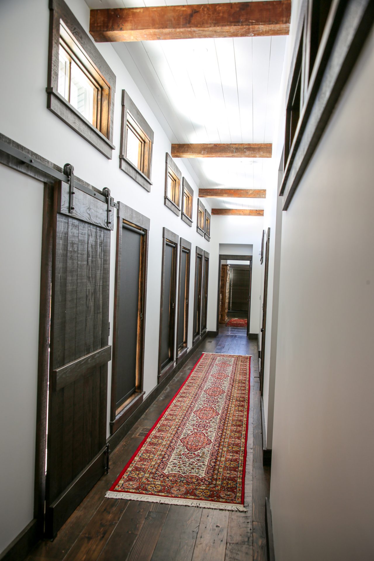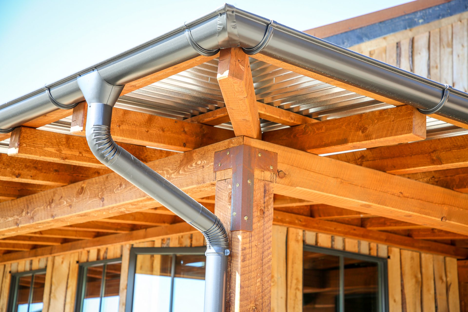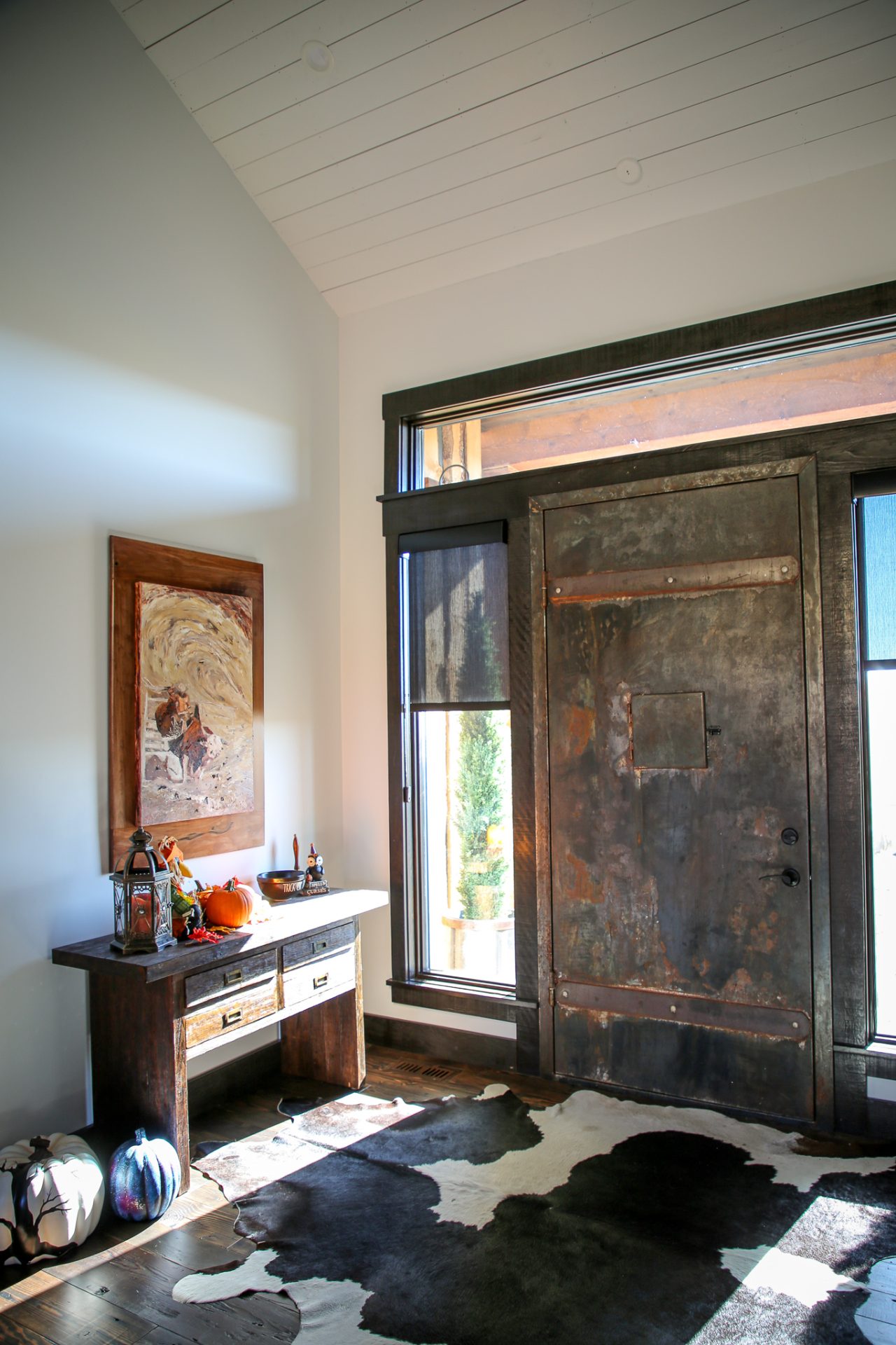 This sprawling Albertan rancher features burnt larch siding, a rusted Corten steel roof and reclaimed timber flooring. We used rough-sawn live edge siding and distressed doors for a rustic, authentic look.