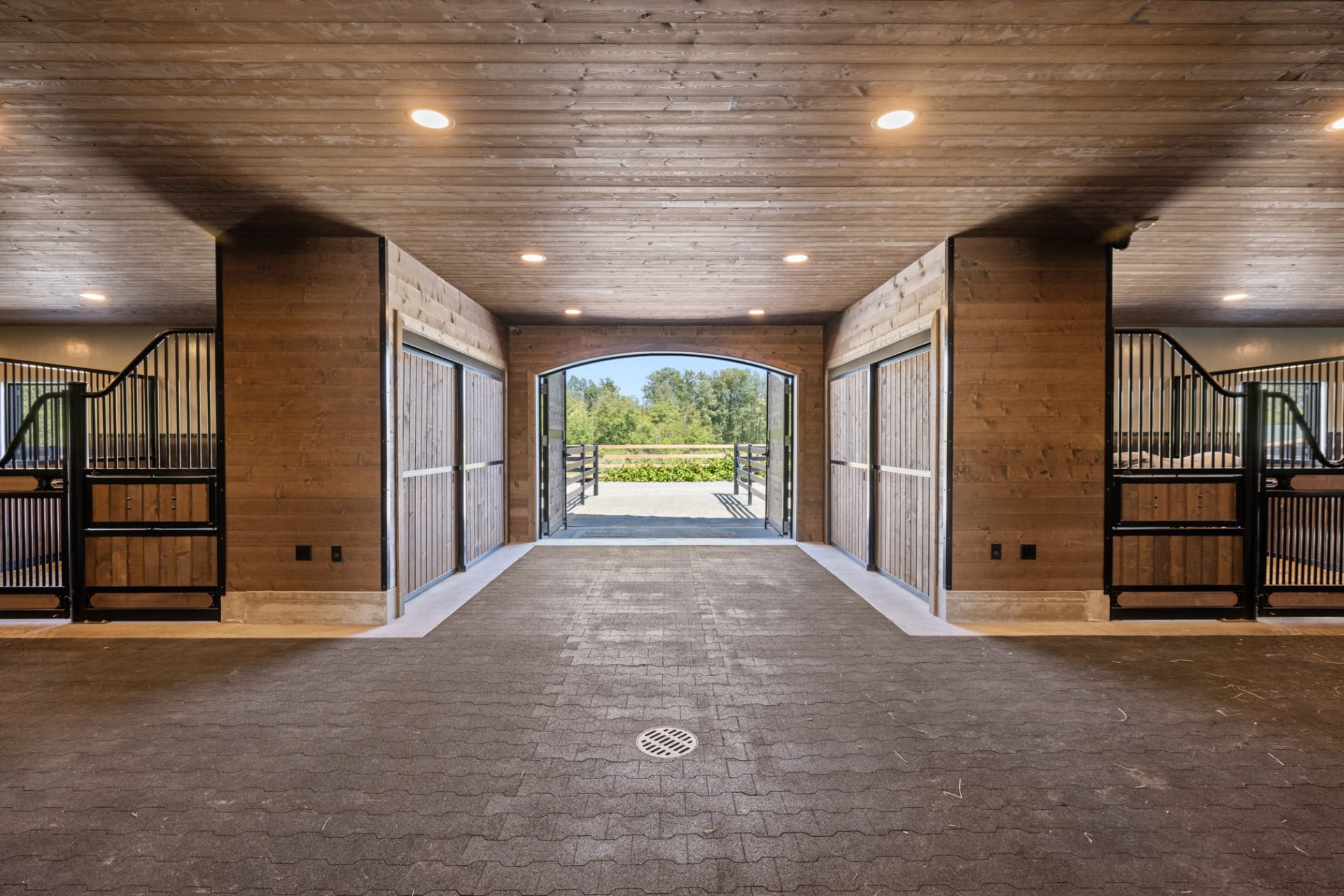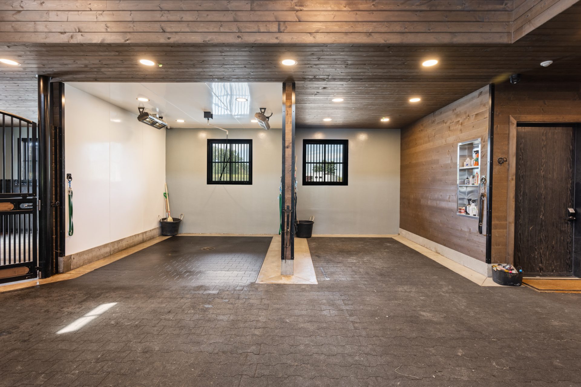 Each of the stalls has a walk-out paddock equipped with automatic waterers, all connected to meters to track water intake. As the facility is designed to accommodate breeding, foaling and training programs, there are four 16X16 foaling stalls.
