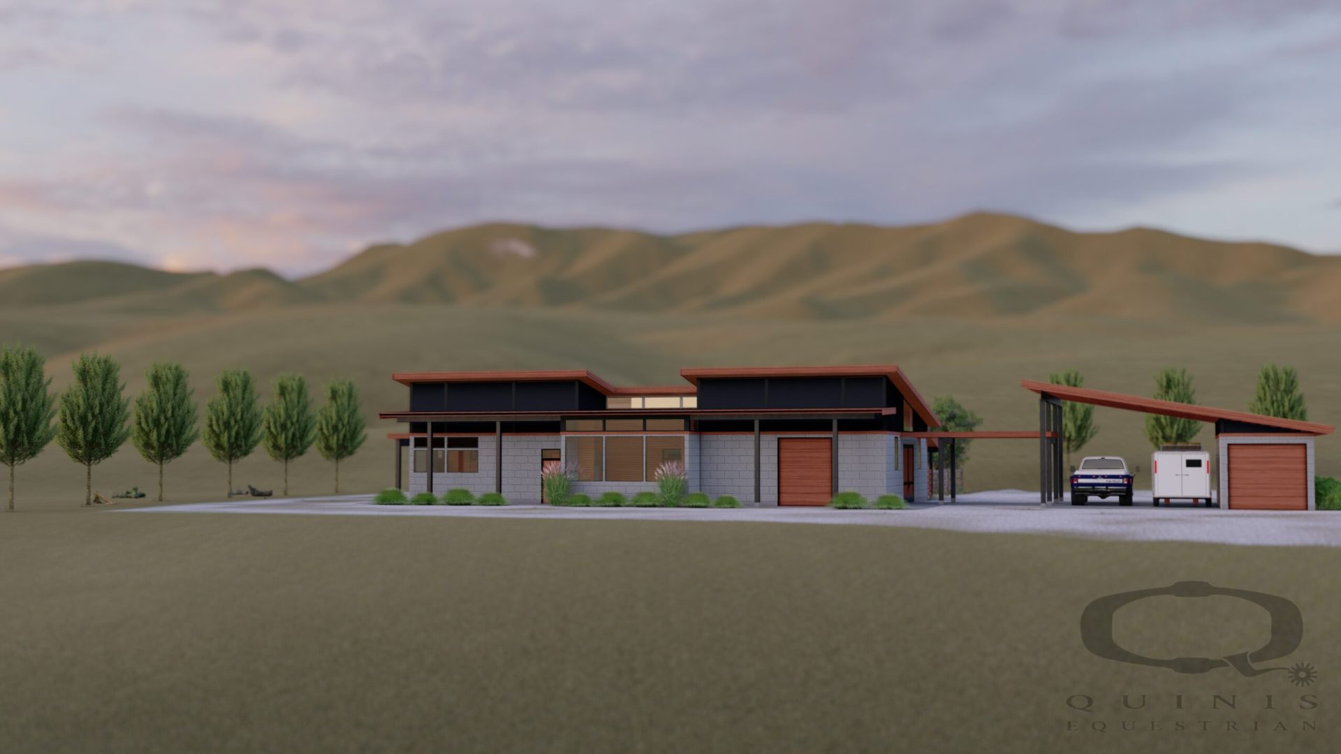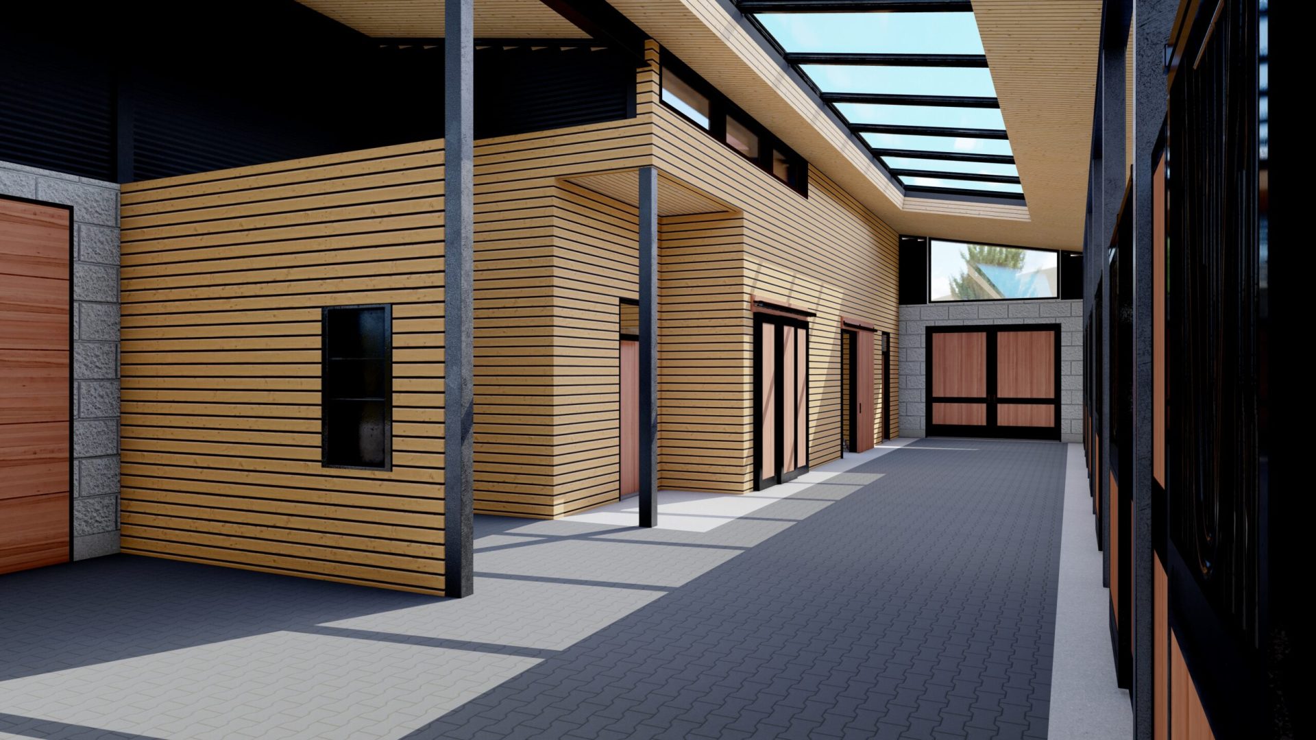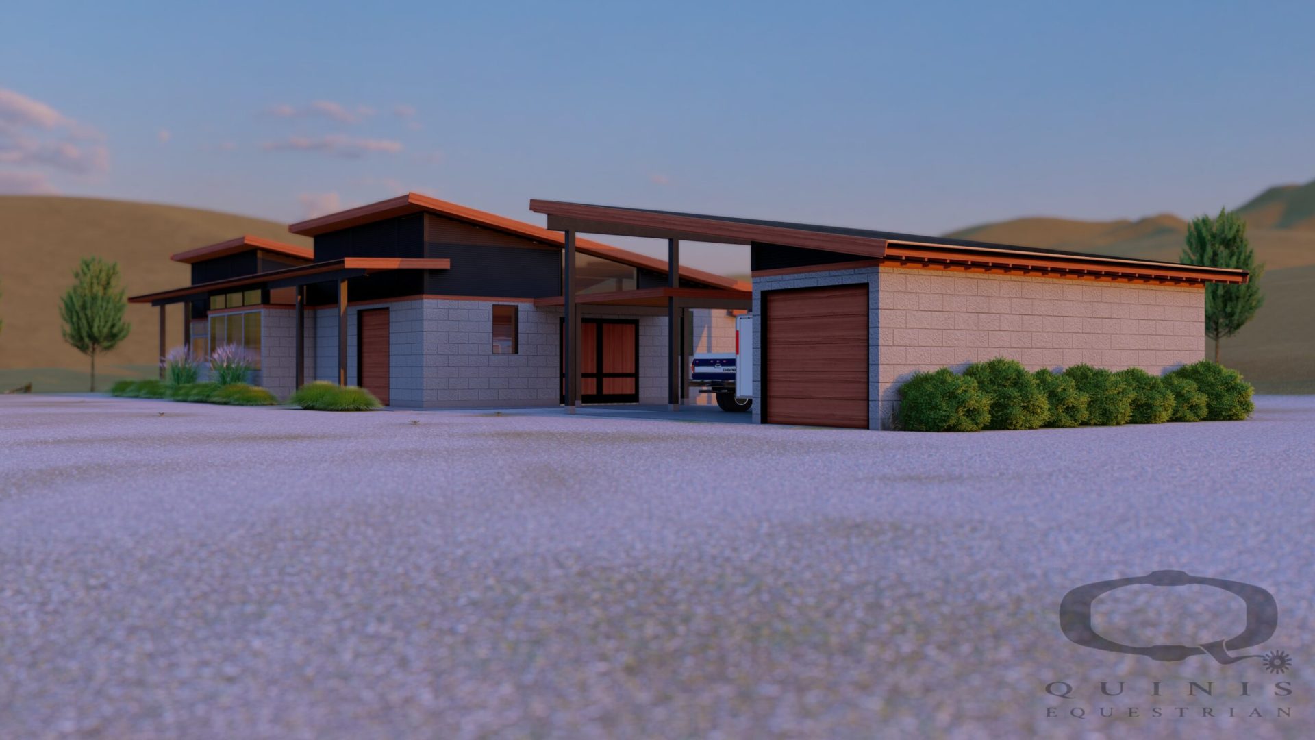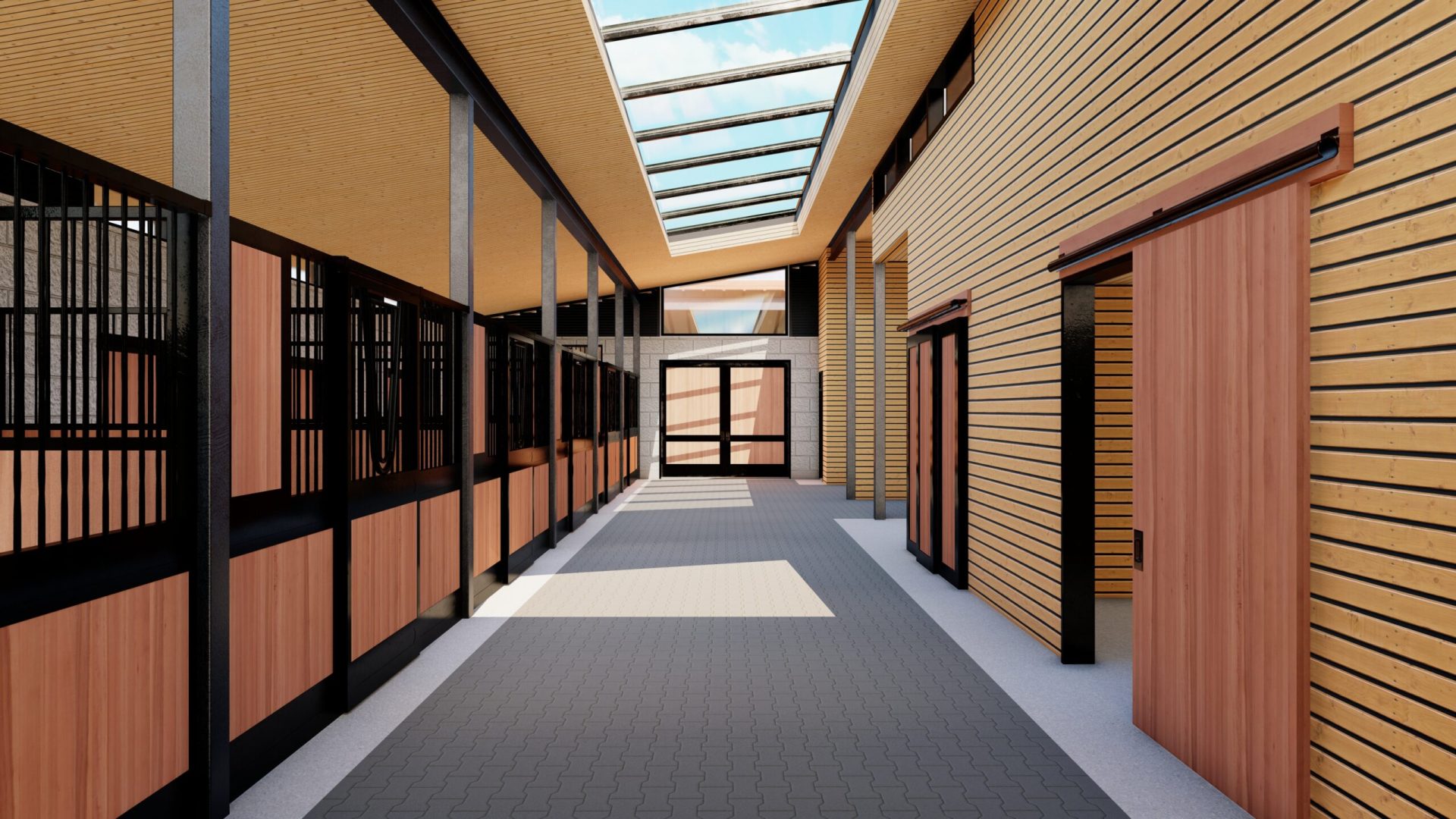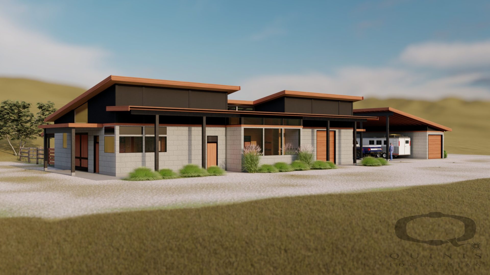 This recent project involves industrial and minimalist concepts not traditionally seen in barn design. The stable will combine materials such as concrete masonry block, steel, & wood accents.